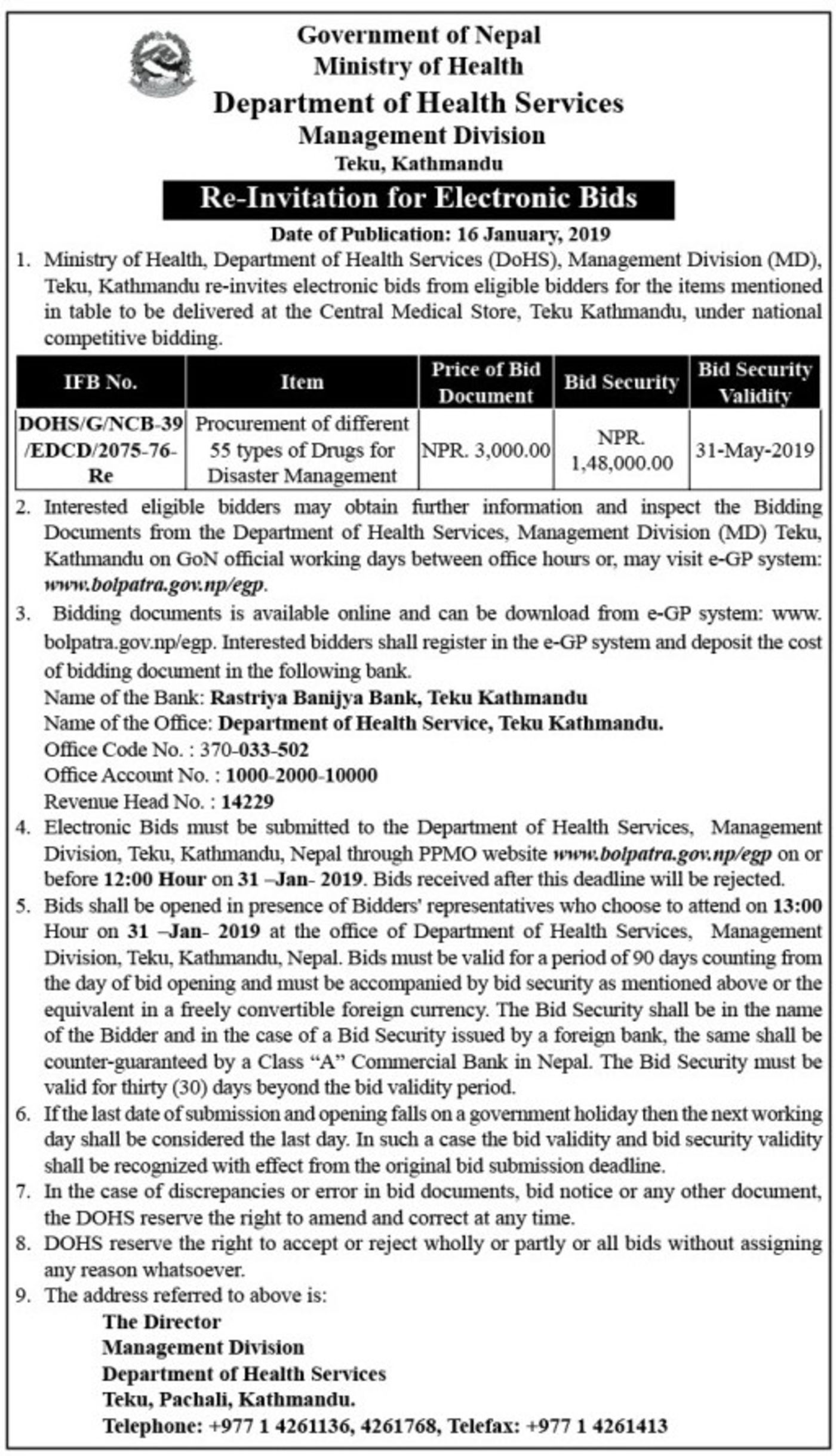 Ministry of health and population nepal. Nepal department of health services annual report 2015 2016. The overall purpose of the department of health services dohs is to deliver preventive promotive and curative health services throughout nepal.