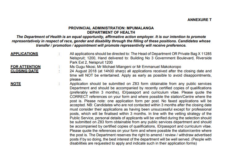 Assistant manager nursing primary health care mseleni hospital. Department of public service and administration. Advertisements mpumalanga department of health vacancies 2020 notification has been published online.