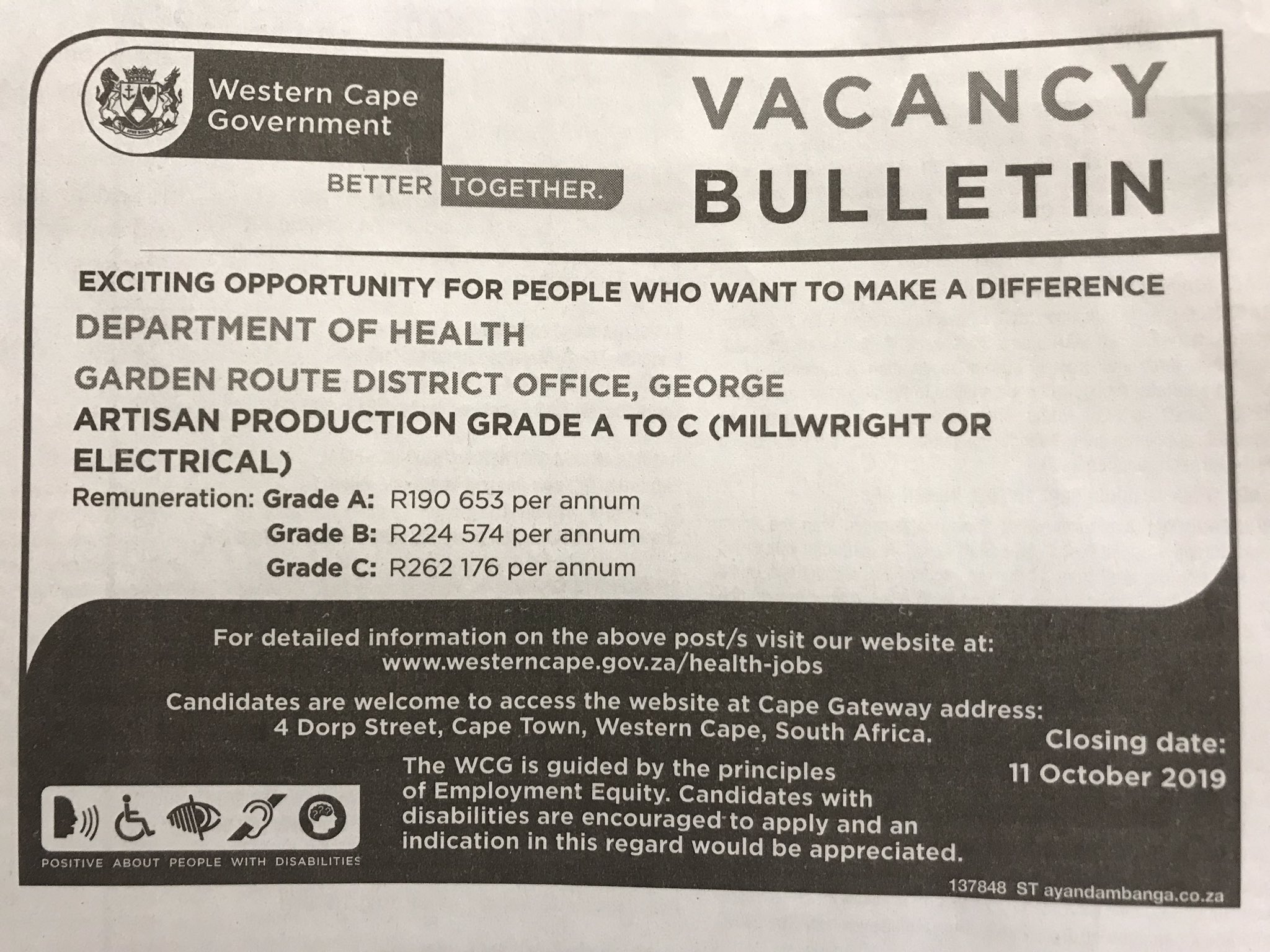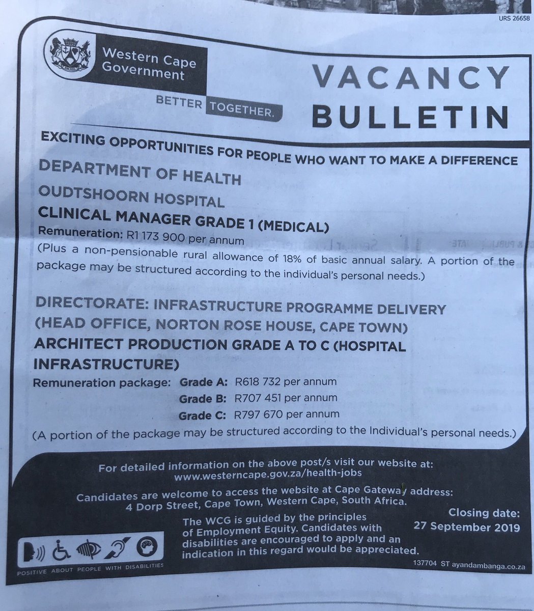 Department of health jobs now available in cape town western cape. Cape winelands district office worcester. This project is an initiative of the western cape government.