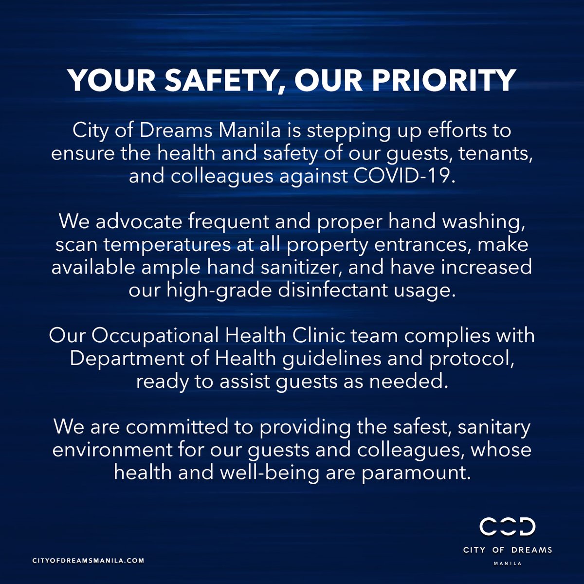 The health and safety of our employees customers and partners remain our number one priority and we are working hard to make sure that we minimize risks related to the spread of covid 19. Everyones health and safety remains our top priority which is why i unfortunately have to postpone all 2020 shows in south america mexico australia and new zealand until further notice. The health and safety of our members and employees is our top priority.