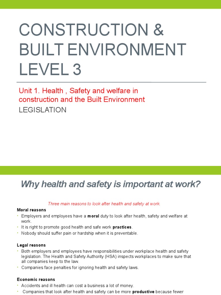 The basis of health and safety legislation relating to the workplace is the health and safety at work etc act 1974it is also known as hasawa or hsw and most health and safety legislation is contained in it. Health and safety legislation laws in the workplace. Your safety health and welfare in healthcare online course.