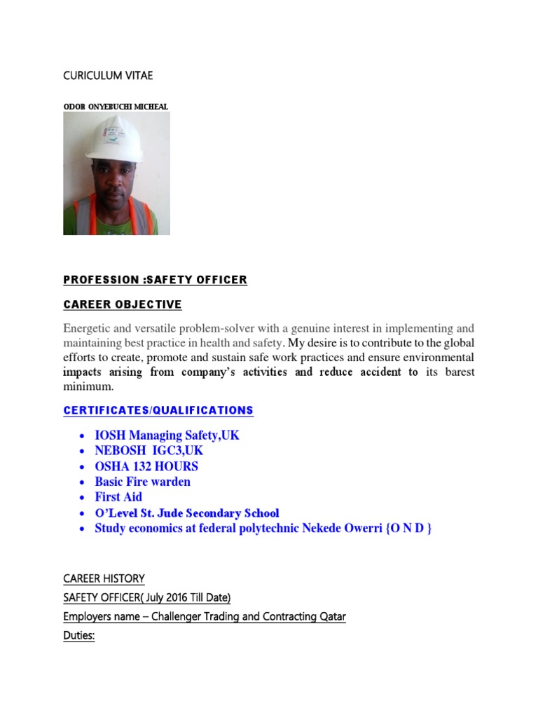 Bscba in safety management engineering or relevant field is preferred. Job description job title. We are looking to employ a qualified and competent safety officer who will be responsible for the health and safety of staff in the workplace.