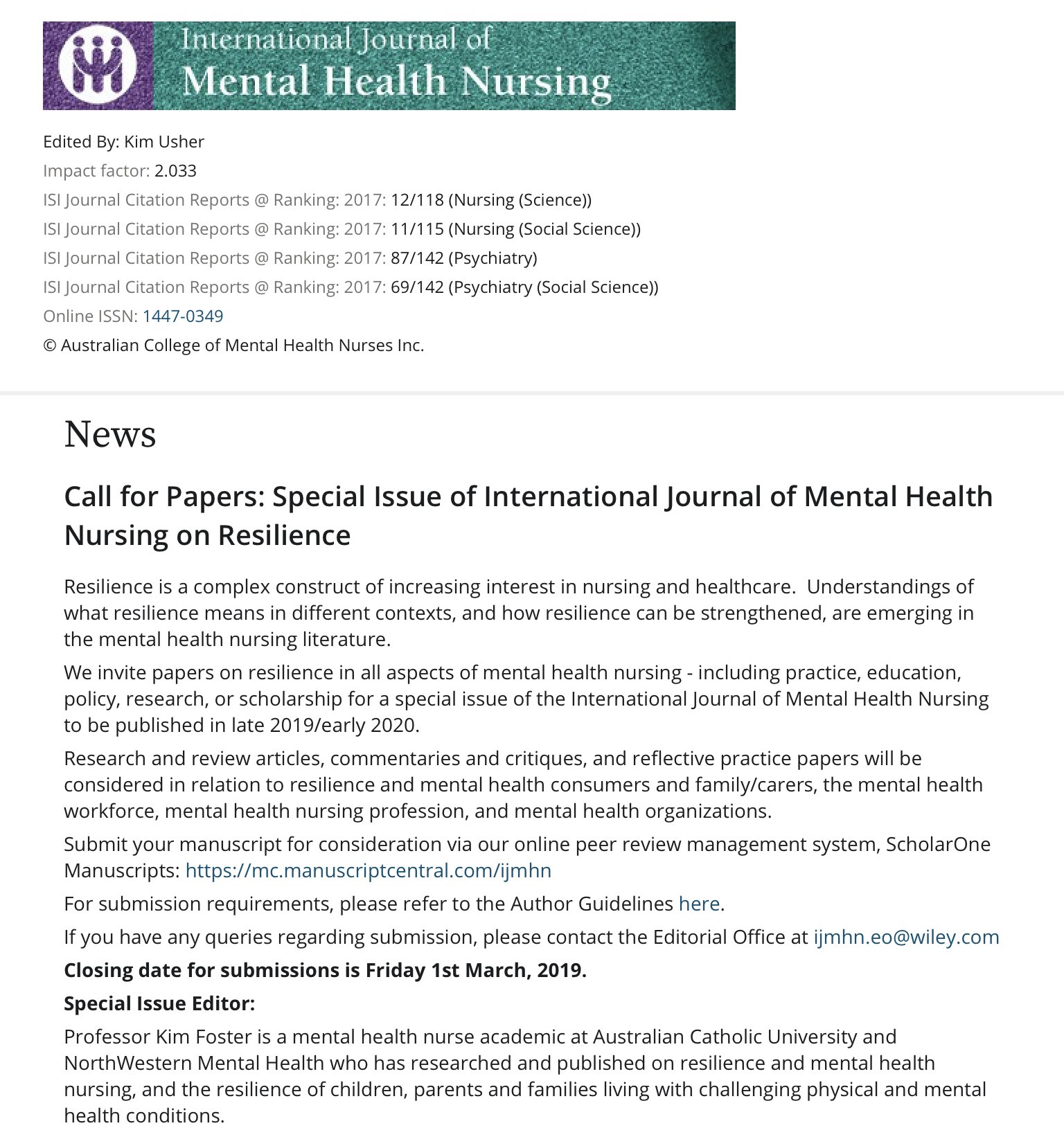 The journal of psychiatric and mental health nursing is an international journal which publishes research and scholarly papers that advance the development of policy practice research and education in all aspects of mental health nursing. Dowling phd msc bns rgn rnt. Oconnell rgn rpn pgd in nursing mental health mhsc specialist nursing m.