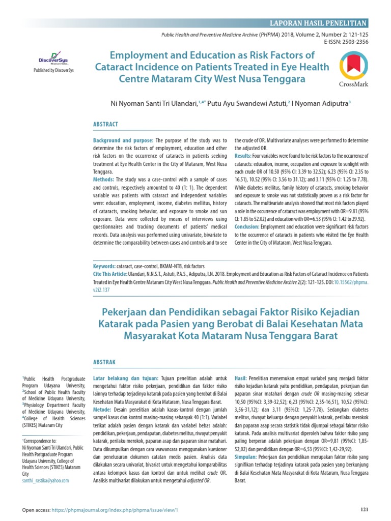 What is health very short answer. Public health and preventive medicine archive phpma is an open access peer reviewed journal published by public health postgraduate program faculty of medicine udayana university in association with indonesian public health association bali branch. Full catalog record marcxml. This study aims to determine risk factors of hypertensionmethods.